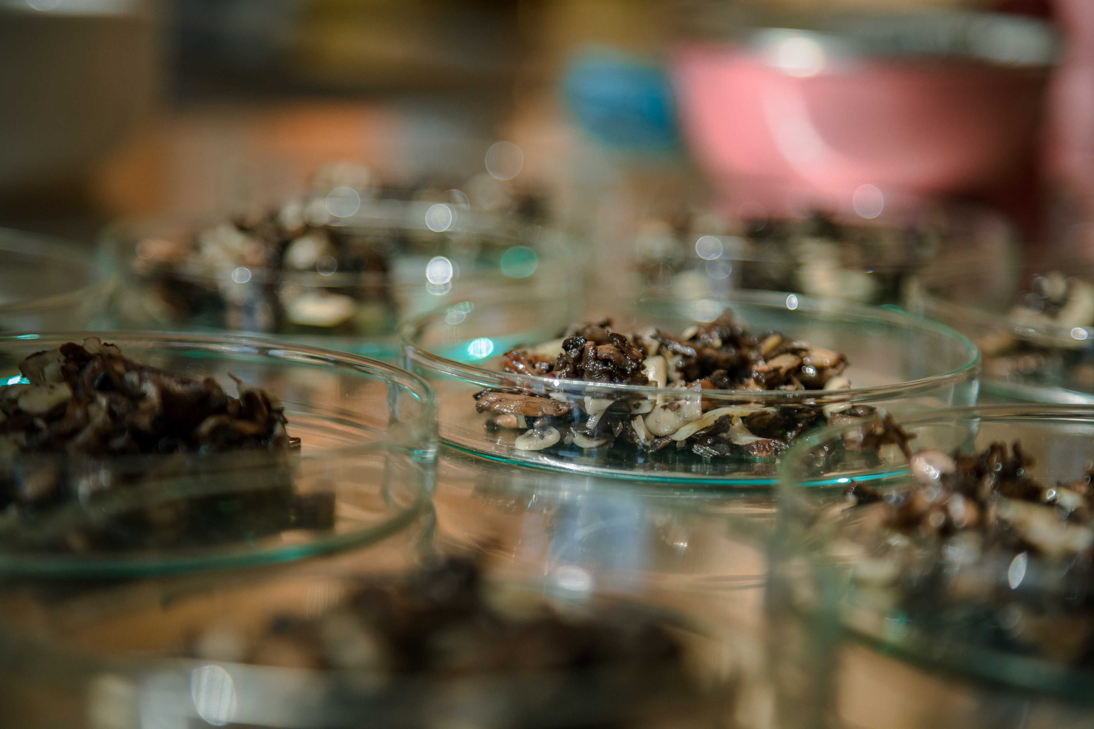 kompost*klang*küche* isst live und simultan an verschiedenen Orten. kompost*klang*küche* macht Welten mit. Im Austausch mit dem Unterirdischen, den Würmern, den Bakterien, Pilzen und Protozoen und mit pseudo-organischen Materialien.